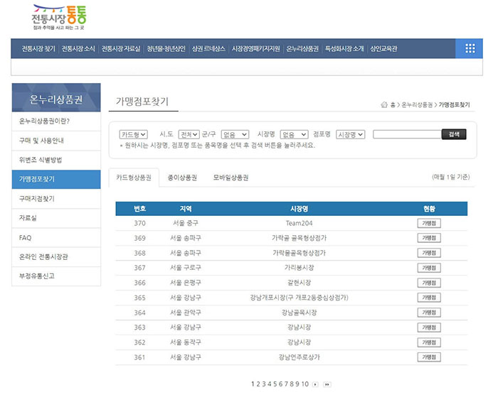 홈 > 온누리상품권 > 가맹점포찾기
