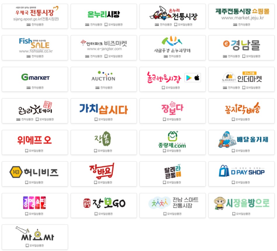 다양한 온라인몰 판매처와 앱에서 사용처를 알아보고 이용할 수 있기 때문에 개인에게 편리한 방법으로 사용처를 알아보시고 이용하시면 되겠습니다.